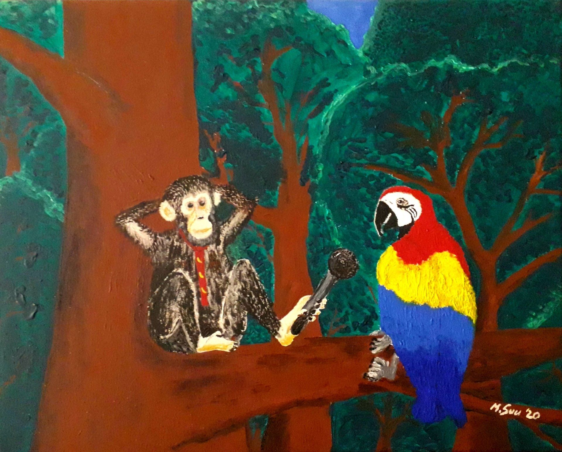 L' anchorman Leopold Chimp, con la sua immancabile cravatta con banane, intervista il pentito Tommaso "pappa" Parrotti Jr. dopo lo scandalo di Mafia Forestale.
